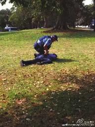 一名目擊導(dǎo)游說:“剛才有兩個客人在悉尼草坪上方便,讓警察看見了。警察追他們,他們提著褲子跑。他們惱羞成怒,要打警察。警察一個過肩摔,把一個男的摔地上骨折了?,F(xiàn)在救護車,警車都過來了?!?/p>