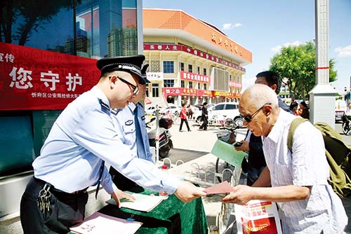 本報訊 5月15日上午,忻府區(qū)公安局在七一北路體育廣場警務(wù)室門前開展了以“與民同心、為您守護(hù)”為主題的打擊和防范經(jīng)濟(jì)犯罪宣傳日活動,受到市民群眾的歡迎。