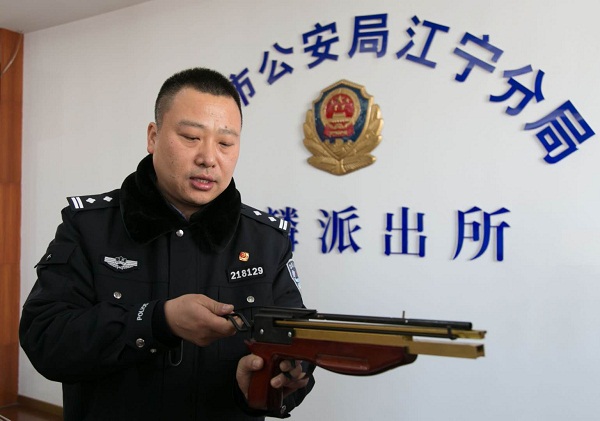 辦案民警介紹弩的殺傷力及給公共安全帶來(lái)的危害。寧公宣攝