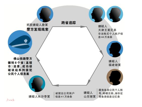 佛山鐵路警方介紹,侵犯公民個人信息犯罪存在取證難、監(jiān)管難的特點。為此,從抓獲第一名嫌疑人起,警方花了七八個月時間進行偵查,專案組多警聯(lián)動,克服重重困難。