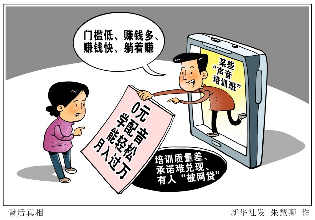 新華社記者發(fā)現(xiàn),有些商家乘機(jī)在網(wǎng)絡(luò)平臺(tái)推銷各類“聲音培訓(xùn)班”。有些培訓(xùn)班大多先以“免費(fèi)專業(yè)聲音培訓(xùn)”“幫聯(lián)系高收入兼職”等承諾招攬學(xué)員,但學(xué)員們?cè)诟邇r(jià)購(gòu)買課程后,并未能實(shí)現(xiàn)廣告所稱“輕松月入過萬”“培訓(xùn)完保障就業(yè)”,有的甚至還背上網(wǎng)貸。