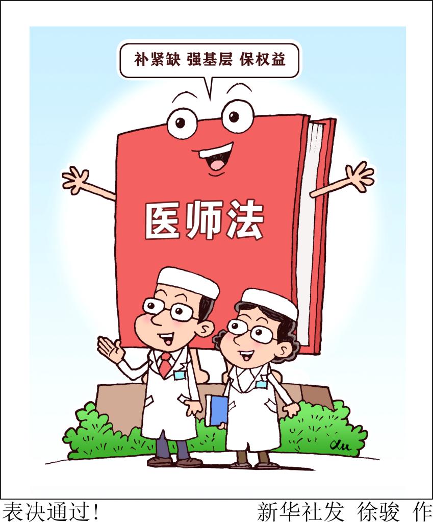 醫(yī)師是護(hù)佑人民健康的守門人。十三屆全國人大常委會第三十次會議2021年8月20日表決通過的醫(yī)師法,于2022年3月1日起施行。新華社發(fā) 徐駿 作