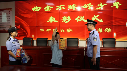 近日,河曲縣公安局民警帶著感謝信和獎品走進黃河路小學(xué),為拾金不昧的王同學(xué)舉行了一場特別的“頒獎儀式”,用滿滿的儀式感鼓勵同學(xué)們大力弘揚社會正能量。