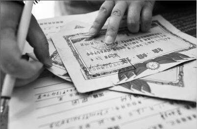 19日下午1點半,80歲的單大爹拿著剛剛補辦的結(jié)婚證,顫巍巍地坐在了官渡區(qū)便民服務(wù)中心二樓的椅子上。45年前,他的結(jié)婚證在一場大火中被燒毀。78歲的老伴符大媽站在一旁,一個勁地說著“太丟人了”!她知道,就在今天,他們剛剛補辦的結(jié)婚證上,將會蓋上一個藍框框,上面寫著:“雙方離婚,證件失效。昆明市官渡區(qū)婚姻登記處。”這張新的結(jié)婚證,他們是為了離婚才補辦的。今年是他們綠寶石婚,這原本寓意圣潔和堅固的愛情。
