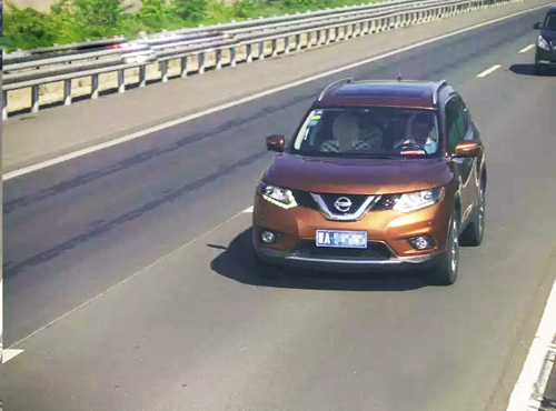6月16日8時(shí)46分,一輛牌照為晉A××××的棕色尼桑小轎車行駛至G20高速955KM+270M處時(shí),被監(jiān)控設(shè)備抓拍下來(lái)。圖像顯示,該車身著白色上衣的駕駛?cè)苏糜沂纸勇犽娫挘⑶覜]有系安全帶。