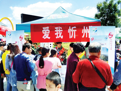 5 月15 日,忻州青年志愿者服務(wù)協(xié)會、愛心公益聯(lián)盟、忻州師院志工部的愛心人士,人員一起來到云中河景區(qū)晉忻夢幻樂園門前,開展“愛我忻州、為家鄉(xiāng)投票”活動,為我市“申旅”助力?;顒蝇F(xiàn)場吸引了眾多游客,大家紛紛拿出手機,為美麗的家鄉(xiāng)投票。圖為投票活動現(xiàn)場。(張志遠(yuǎn) 攝)