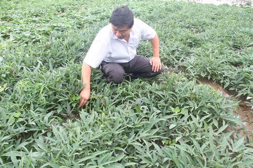 為了充分發(fā)揮紅薯新品種龍薯一號的優(yōu)良中性,加快新品種的推廣步伐。7月20日,原平市農(nóng)業(yè)學(xué)校種植科劉主任在實(shí)訓(xùn)基地查看長勢喜人的新品種紅薯。近年來,該校利用新技術(shù)培育脫毒苗進(jìn)行新作物、新品種的試驗(yàn)示范,為農(nóng)民脫貧增產(chǎn)增收發(fā)揮了積極作用,拓寬了農(nóng)民致富路子。(褚震 攝)