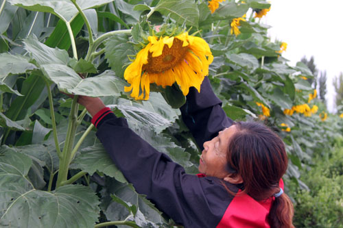 7月20日,原平市解放街農(nóng)民劉麗平正在長勢(shì)喜人葵花地里打支扣進(jìn)行管理。該市積極引導(dǎo)農(nóng)民大力發(fā)展油料經(jīng)濟(jì)農(nóng)業(yè)種植,因地制宜、多措并舉,促使農(nóng)業(yè)增產(chǎn)農(nóng)民增收。(趙春曉 攝)