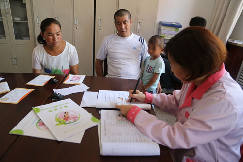7月26日,來(lái)自靜樂(lè)縣杜家村鎮(zhèn)李家灣村的趙金國(guó)夫婦在該縣計(jì)生服務(wù)中心接受了免費(fèi)孕前優(yōu)生健康檢查。近年來(lái),為降低出生缺陷發(fā)生風(fēng)險(xiǎn),提高出生人口素質(zhì),靜樂(lè)縣大力宣傳孕前優(yōu)生健康檢查知識(shí)、意義、檢查項(xiàng)目等內(nèi)容,積極為農(nóng)村計(jì)劃懷孕夫婦開(kāi)展免費(fèi)孕前優(yōu)生健康檢查,受到群眾好評(píng)。圖為計(jì)生工作人員正在給趙金國(guó)夫婦作登記。(閆曉梅 攝)