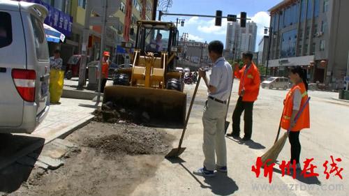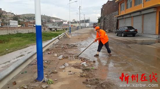 偏關(guān):暴雨過后留污泥 環(huán)衛(wèi)工人忙清理