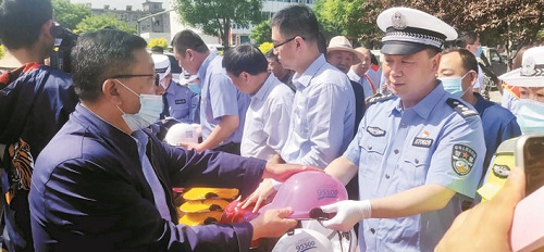 本報訊 為最大限度減少因交通事故造成的人員傷亡,5月14日,市公安局交警支隊(duì)聯(lián)合市保險業(yè)協(xié)會、太平洋保險忻州分公司和城區(qū)快遞、外賣企業(yè),舉辦以“一盔一帶”為主題的警企聯(lián)合勸導(dǎo)活動,在進(jìn)行安全宣傳的同時,為途經(jīng)的騎行市民發(fā)放安全頭盔。對駕乘摩托車不佩戴頭盔、駕乘車輛不按規(guī)定佩戴安全帶的交通違法行為進(jìn)行勸導(dǎo),積極倡導(dǎo)市民在騎電動自行車時佩戴頭盔。