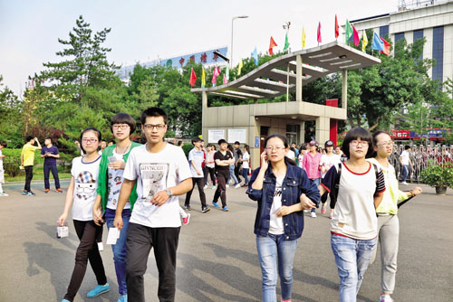 圖為6月6日下午5時(shí),忻州一中考點(diǎn)的考生們進(jìn)入校區(qū),確認(rèn)、熟悉考場(chǎng)環(huán)境。