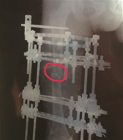 牽引架將斷骨處拉開(kāi),3個(gè)月增加近8厘米。