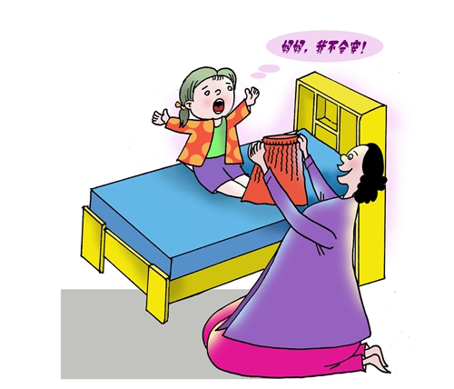 對(duì)于孩子不會(huì)做的事情,大人要教給他正確的方法,可以通過游戲的形式讓他完成,如將穿衣的方法編成一首兒歌,“抓領(lǐng)子,蓋房子,小老鼠,出洞子,吱溜吱溜上房子?!弊尯⒆釉诶世噬峡诘膬焊柚袑W(xué)會(huì)穿衣,以此調(diào)動(dòng)他動(dòng)手的興趣,更好地體驗(yàn)成功的快樂!