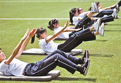 仰臥起坐,慢跑、拋擲實心球、排球……昨天上午10時35分,北京市第十八中學(xué)初三(8)班同學(xué)們的體育課開始了。3位體育老師帶著同學(xué)們在操場上進行體育鍛煉。據(jù)悉,下月中旬,本市初三的學(xué)子們將迎來中考體育考試。與往年不同,今年北京中考體育考試在考試時間上調(diào)整為6月10日開始、7月1日前完成。在組織形式上改為隨堂考試。