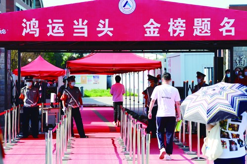 在北京市人大附中通州校區(qū)高考考點(diǎn),考生正步入考場。 中國婦女報(bào)·中國婦女網(wǎng)記者 楊睿/攝