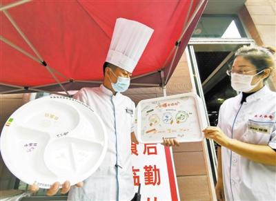 9月15日,北京交通大學餐廳推出“我的餐盤我做主——優(yōu)化膳食結(jié)構(gòu) 夯實免疫基石”主題活動?;顒映珜э嬍扯鄻踊?,減少食物浪費。餐盤上標注的谷薯、蔬菜、水果、魚肉等膳食種類,將科普和節(jié)約融為一體。