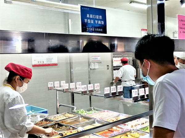 上海交通大學的食堂的各類面條實行大份、小份供餐。9月1日起,上海交通大學的學生開始分批、錯時到校開學。開學后,學校食堂加強節(jié)約糧食、光盤行動的宣傳,并采取多項措施引導師生員工文明用餐,杜絕浪費。