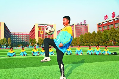 10月25日,河北省衡水市志臻學(xué)校安平校區(qū),學(xué)生進(jìn)行足球顛球項(xiàng)目比賽。本報(bào)記者 郭俊鋒攝/光明圖片
