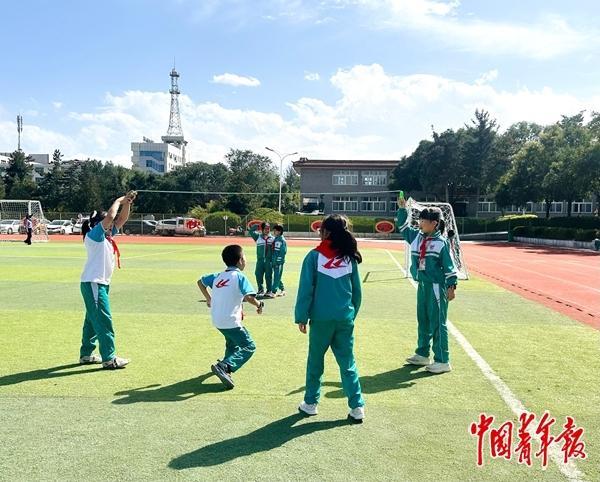 9月8日下午,記者來到固原市原州區(qū)第十一小學(xué)(以下簡稱“原州十一小”)。課間15分鐘,教學(xué)樓前的空地上,學(xué)生們跳繩、打沙包、跳方格,歡笑聲此起彼伏;30分鐘大課間時段,在學(xué)校老師陪伴下,56個班級2976名學(xué)生參加“迷你軍訓(xùn)”、武術(shù)、球類運(yùn)動、冰壺訓(xùn)練、自由運(yùn)動等,響亮的口號聲在操場回蕩;體育課上,孩子們以班級為單位,踢足球、打羽毛球、打籃球,一張張笑臉上洋溢著蓬勃朝氣。