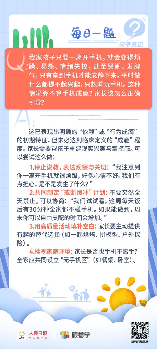 每日一題丨孩子離開手機就煩躁、易怒,這屬于手機成癮嗎?
