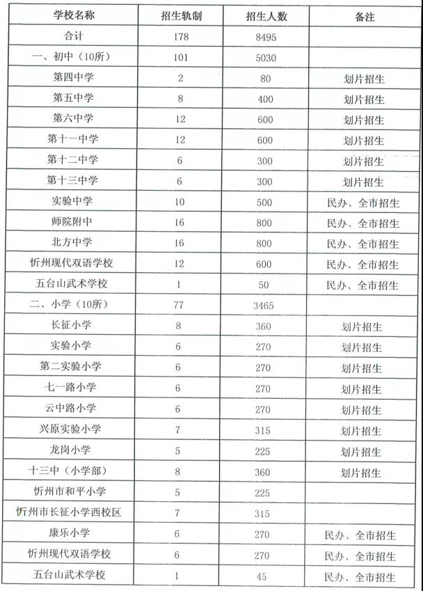 4.忻州市2020年市直義務(wù)教育階段學(xué)校招生計劃