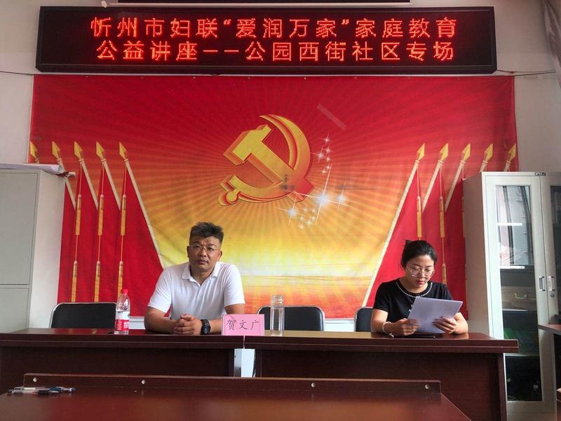 7月22日下午,忻州市長(zhǎng)征小學(xué)組織三年級(jí)30余名學(xué)生家長(zhǎng)在世紀(jì)花苑物業(yè)三樓參加了由忻州市婦聯(lián)組織的“愛潤(rùn)萬家”家庭教育公益講座,講座由心理學(xué)研究中心賀文廣會(huì)長(zhǎng)主持。