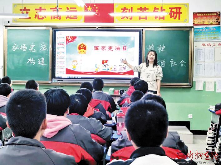 本報訊 2020年12月4日,是我國第七個國家憲法日,為大力弘揚(yáng)憲法精神,向?qū)W生普及憲法和法律知識,引導(dǎo)青少年學(xué)生自覺成為憲法的忠實(shí)崇尚者、自覺遵守者、堅(jiān)定捍衛(wèi)者,營造良好的校園法治教育環(huán)境和氛圍,北方中學(xué)開展了以“弘揚(yáng)憲法精神,護(hù)航少年成長”為主題的“12·4憲法日”系列活動。