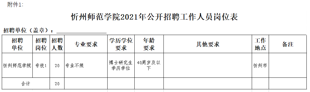 附件:1.忻州師范學(xué)院2021年公開招聘工作人員崗位表