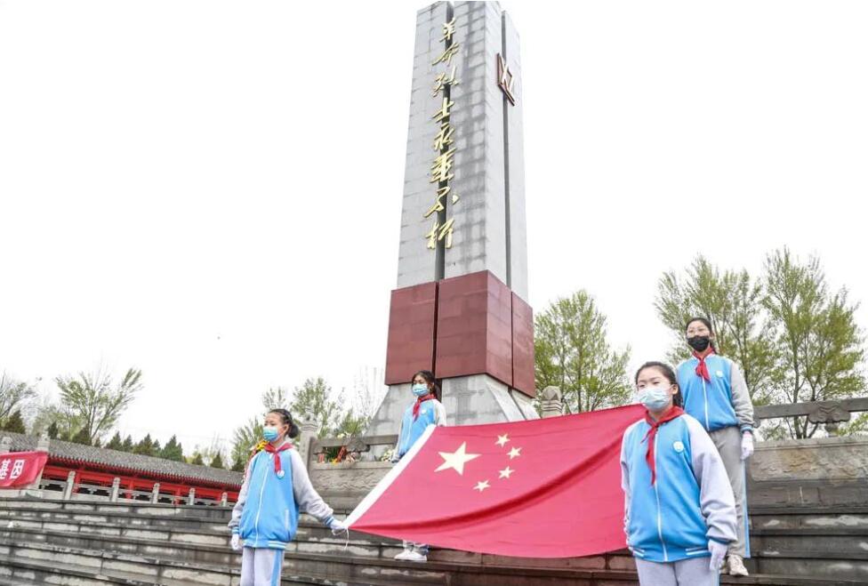 “我們是共產(chǎn)主義接班人,繼承革命先輩的光榮傳統(tǒng)……”少先隊(duì)員清脆的歌聲清遠(yuǎn)悠揚(yáng),深切表達(dá)著對(duì)先烈們的悼念、緬懷之情。