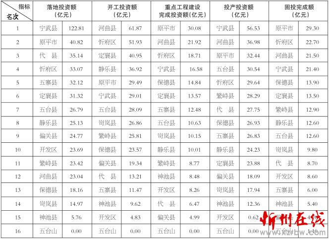 忻州1-5月各縣 (市、 區(qū)) 重點(diǎn)工程和固定資產(chǎn)完成額排名表