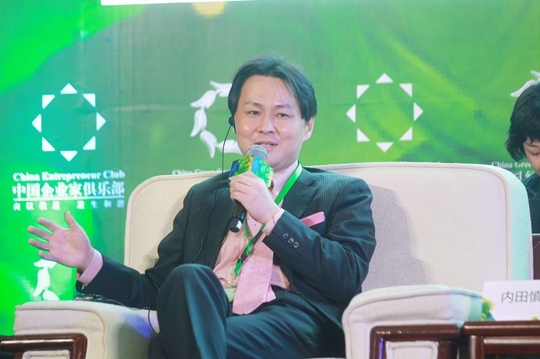 柒一拾壹(中國(guó))投資有限公司董事長(zhǎng)、總經(jīng)理內(nèi)田慎治在“2017中國(guó)綠公司年會(huì)”上發(fā)言 大會(huì)供圖