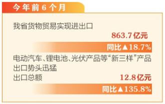 本報訊(記者孟婷)7月31日,記者從太原海關(guān)獲悉,據(jù)統(tǒng)計,今年前6個月,我省貨物貿(mào)易實(shí)現(xiàn)進(jìn)出口863.7億元,同比增長18.7%,與此同時,電動汽車、鋰電池、光伏產(chǎn)品等“新三樣”產(chǎn)品出口勢頭迅猛,出口總額12.8億元,同比增長135.8%,遠(yuǎn)超傳統(tǒng)出口商品。這些高科技產(chǎn)品不僅代表山西制造業(yè)轉(zhuǎn)型升級的最新成果,也為山西在國際市場競爭中贏得了新優(yōu)勢。