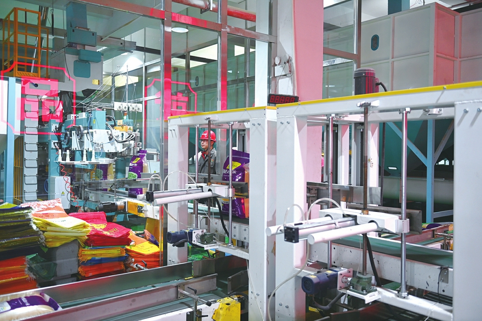 9月5日,五寨縣雜糧產(chǎn)業(yè)園內(nèi),工作人員正用全自動(dòng)生產(chǎn)線裝運(yùn)雜糧。該產(chǎn)業(yè)園是集農(nóng)產(chǎn)品生產(chǎn)、加工、倉(cāng)儲(chǔ)、物流、市場(chǎng)營(yíng)銷(xiāo)、品牌建設(shè)于一體的農(nóng)產(chǎn)品精深加工產(chǎn)業(yè)園,實(shí)現(xiàn)年銷(xiāo)售收入14.6億元。