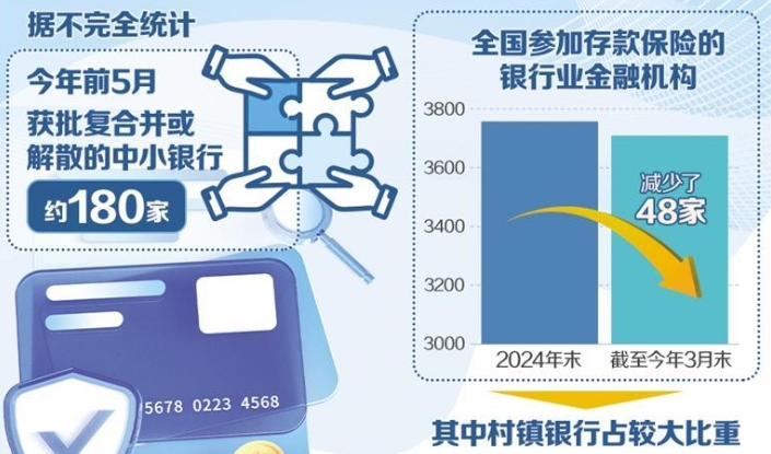 中小銀行是我國金融體系的重要組成部分,也是推動(dòng)區(qū)域經(jīng)濟(jì)發(fā)展和服務(wù)實(shí)體經(jīng)濟(jì)的生力軍。今年以來,我國中小銀行改革重組步伐加快,多地的村鎮(zhèn)銀行、農(nóng)商銀行等金融機(jī)構(gòu)被吸收合并重組,將在金融機(jī)構(gòu)名單上加速消失。據(jù)不完全統(tǒng)計(jì),今年前5月,約180家中小銀行獲批復(fù)合并或解散。