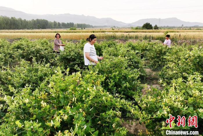 “三夏”大忙時(shí)節(jié),呂梁山脈姑射山下,山西省運(yùn)城市新絳縣澤掌鎮(zhèn)喬溝頭、吳嶺莊、光村等村,千畝金銀花喜獲豐收,花農(nóng)們正采摘搶收。近年來,當(dāng)?shù)匾浴盎ā睘椤懊健保掷m(xù)加大果、藥等產(chǎn)業(yè)發(fā)展,成為鄉(xiāng)村振興“新動(dòng)力”。
