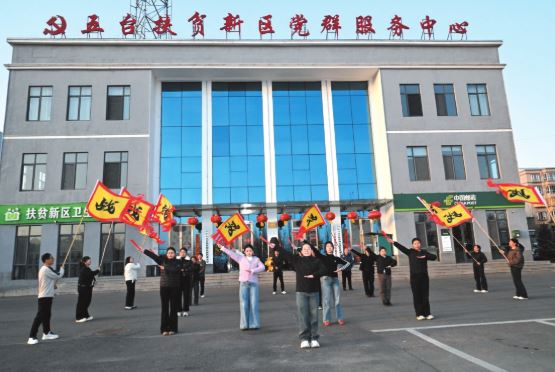 正月初八,走進(jìn)位于五臺縣東雷鄉(xiāng)的扶貧新區(qū)社區(qū),夕陽余暉灑滿這片占地26萬平方米的集中安置區(qū)。13棟六層居民樓內(nèi)年味濃郁,街道上紅燈籠高懸,家家戶戶門前張貼著紅彤彤的對聯(lián)。辦公樓前的廣場上鼓樂悠揚(yáng)、彩旗飄飄,由社區(qū)牽頭、居民自發(fā)參與的秧歌隊正加緊排練,準(zhǔn)備參加該縣元宵節(jié)文藝匯演。圍觀居民的歡聲笑語與參與者的歡快舞姿,勾勒出一幅溫馨熱鬧的新春畫卷。
