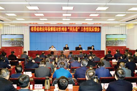 圖為省委省政府環(huán)保督察對(duì)忻州市“回頭看”工作情況反饋會(huì)會(huì)場(chǎng)。本報(bào)記者范濤攝