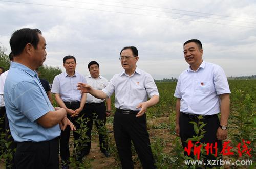 圖為省人大常委會副主任、市委書記李俊明在原平市新原鄉(xiāng)唐林崗村調研農(nóng)業(yè)產(chǎn)業(yè)結構調整情況。本報記者劉紀森攝