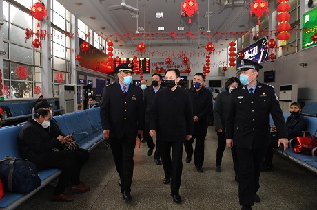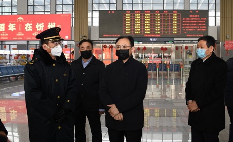 省人大常委會副主任、市委書記李俊明在火車站檢查督導(dǎo)疫情防控措施準(zhǔn)備情況 本報記者 劉紀(jì)森 攝
