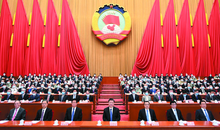 5月27日,中國人民政治協(xié)商會(huì)議第十三屆全國委員會(huì)第三次會(huì)議在北京閉幕。這是習(xí)近平、李克強(qiáng)、栗戰(zhàn)書、王滬寧、趙樂際、韓正、王岐山等在主席臺(tái)就座。 新華社記者 謝環(huán)馳 攝