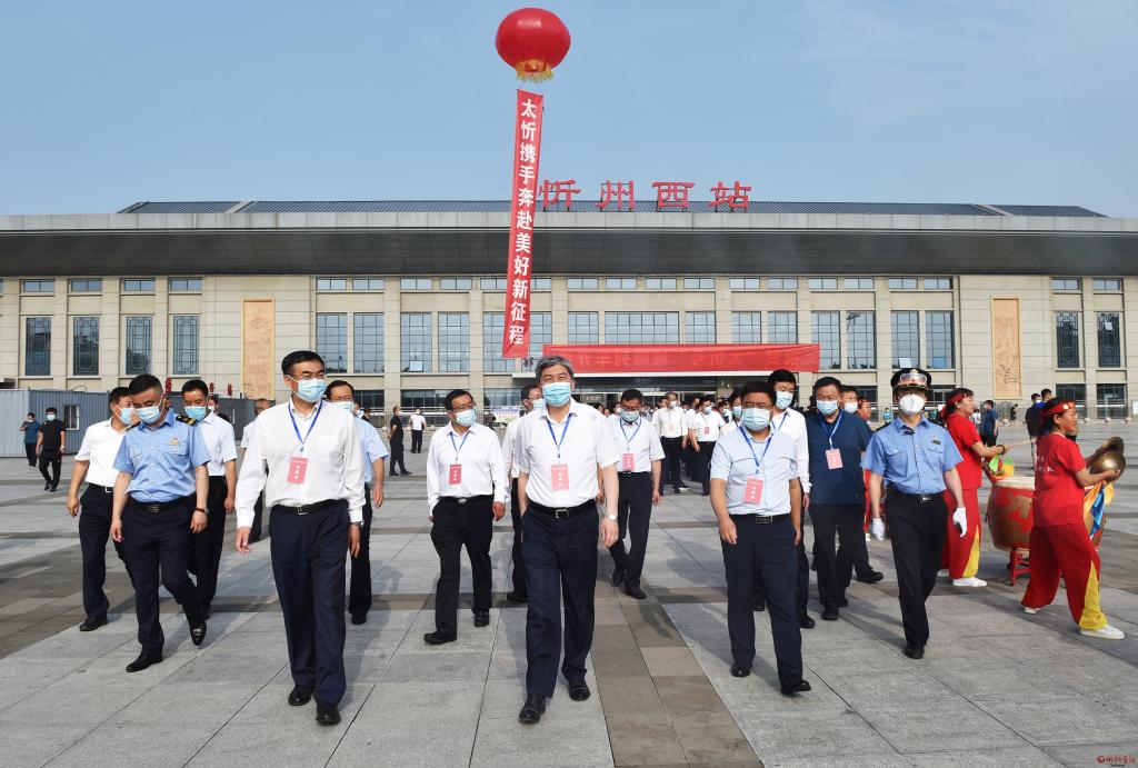 儀式結(jié)束后,朱曉東、李建國(guó)等一行共同乘坐以“錦繡太原·康養(yǎng)忻州”為主題包裝打造、冠名“太忻號(hào)”的D5306次動(dòng)車組列車返回忻州。