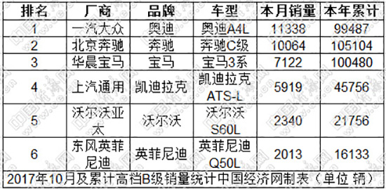 其中,奧迪追趕的步伐仍在繼續(xù),A4L已連續(xù)三個月蟬聯(lián)高檔B級車市場冠軍,10月份銷售11338輛,并穩(wěn)穩(wěn)地保持住月銷萬輛的市場能力,與榜首奔馳C級的累計銷量差距約為5500輛,未來兩個月仍有反超的希望。
