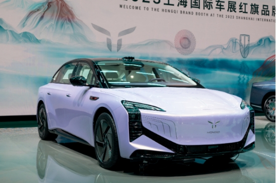 在綠色。低碳、創(chuàng)新理念的驅(qū)動下,紅旗品牌確定了新能源汽車全球戰(zhàn)略,以全新的理念、標(biāo)識、設(shè)計語言和前沿技術(shù)架構(gòu),全速、全域推動電動化進程。紅旗新能源子品牌的標(biāo)識是“旗妙雙翼”,寓意“雛鷹展翅、生命激發(fā)”,宣示著紅旗新能源關(guān)切自然、珍愛生命,聚焦新能源、聚力綠色智慧出行的戰(zhàn)略理念。紅旗新能源子品牌的兩款全新車型紅旗E001與紅旗E202在車展上亮相。