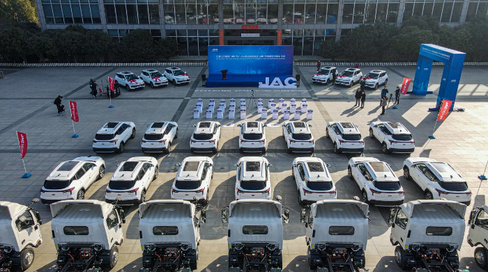 江淮汽車出口挪威500臺(tái)e-JS4暨法國(guó)西班牙100臺(tái)電動(dòng)輕卡發(fā)車儀式