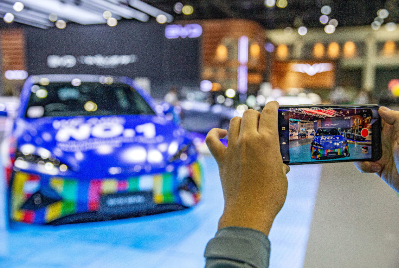 (資料圖片)3月27日,一名觀眾在泰國(guó)曼谷國(guó)際車展上拍攝一款中國(guó)品牌汽車。 新華社記者 王騰 攝