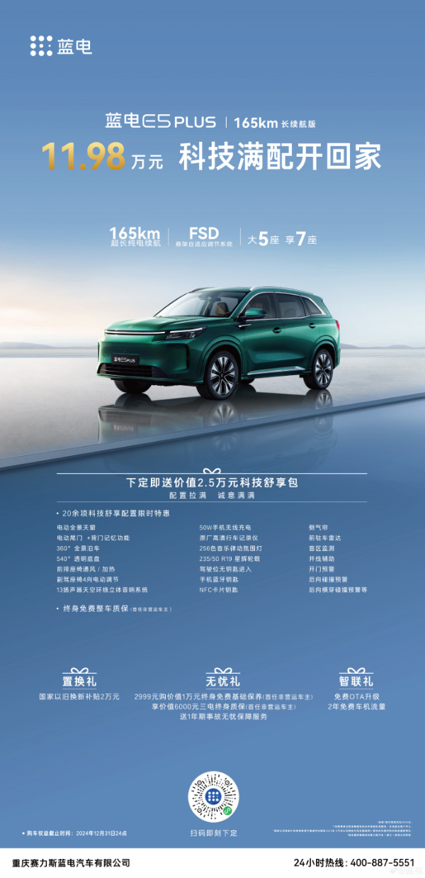 特別是在主銷車型上,藍(lán)電E5 PLUS 165長續(xù)航版搭配2.5萬元科技舒享包,11.98萬元的價(jià)格,不僅極具競爭力,更在性能、配置和續(xù)航上全面領(lǐng)先。與同級車型相比,藍(lán)電E5 PLUS在保持高性價(jià)比的同時(shí),還提供了更加豐富的配置和更加出色的駕駛體驗(yàn)。這種獨(dú)到的價(jià)格策略,使得藍(lán)電E5 PLUS在市場中脫穎而出,上市25天定單破萬,11月10日全面開啟交付以來,累計(jì)交付超5000臺(tái),成為了消費(fèi)者心目中的性價(jià)比之選。