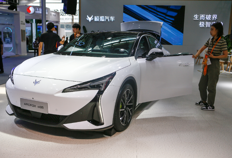 2024年9月13日,參會者在服貿(mào)會首鋼園會場參觀極狐新能源汽車。新華社記者 丁洪法 攝