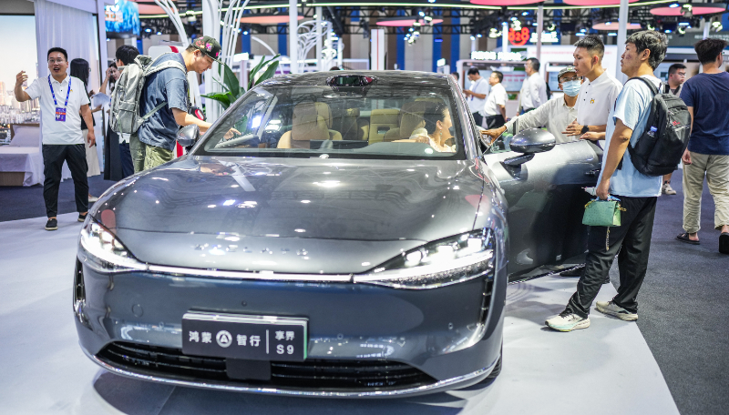 2024年8月28日,觀展者在2024中國國際大數(shù)據(jù)產(chǎn)業(yè)博覽會會場參觀智能駕駛汽車。 新華社記者 陶亮 攝