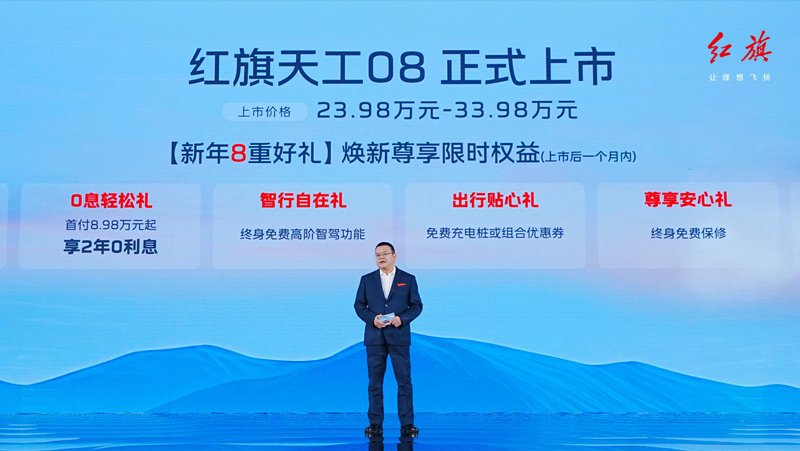一汽紅旗汽車銷售有限公司常務副總經理肖肖公布天工08上市價格及權益